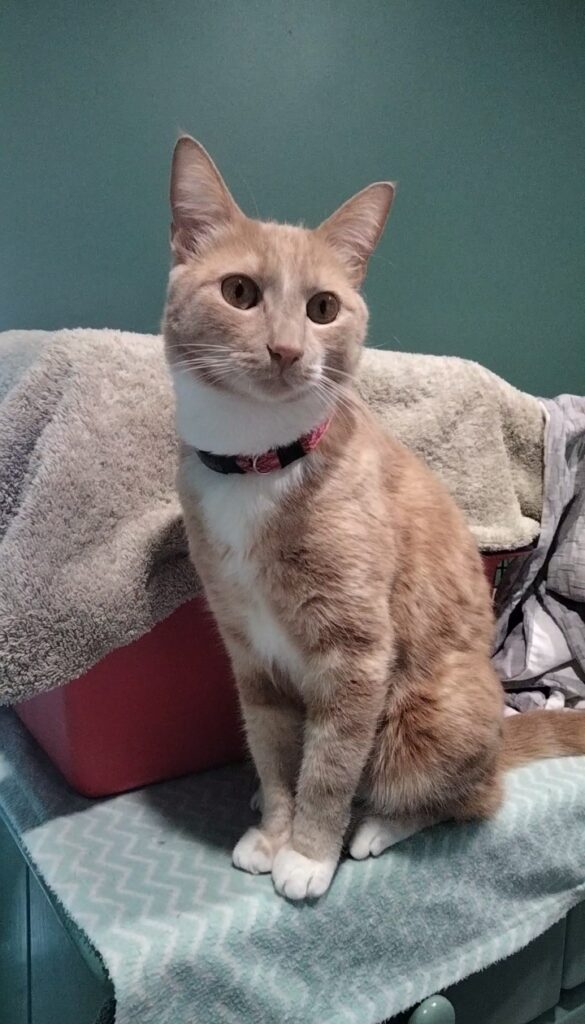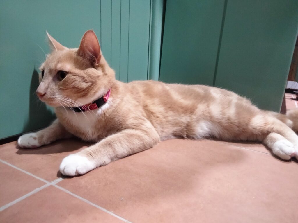 – I’ve done some animal kinesiology therapy with him to help reduce his stress levels. Cats respond really well to kiensiology and from a previous session (when he was back at his old home) his human told me he was a different cat afterwards.