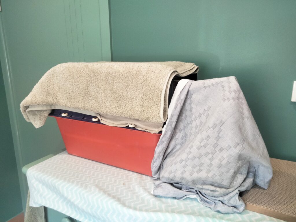 – Because he’s world has become smaller for now, I’ve done my best to make the space interesting and to help him feel safe in it. He has multiple hidey holes and comfortable resting spots, grass to munch on, high places to perch and his favourite king size bed to kneed cookies in.